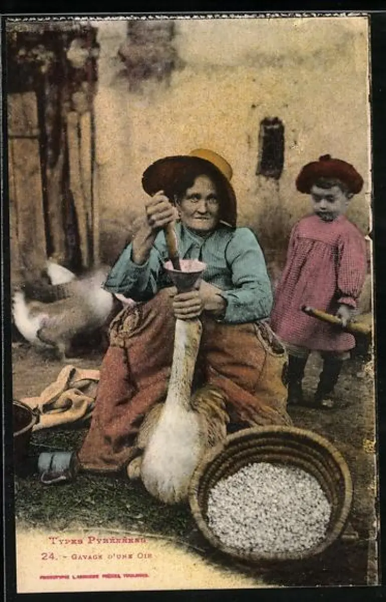 AK Types Pyreneens, französische Bäuerin beim Gänse stopfen