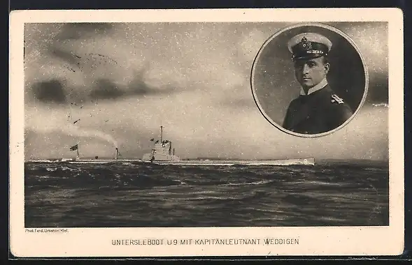 AK U-Boot U 9 mit Kapitänleutnant Otto Weddigen