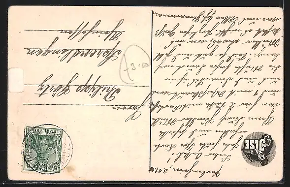 alte Ansichtskarte, gelaufen, Einriss re., guter Zustand