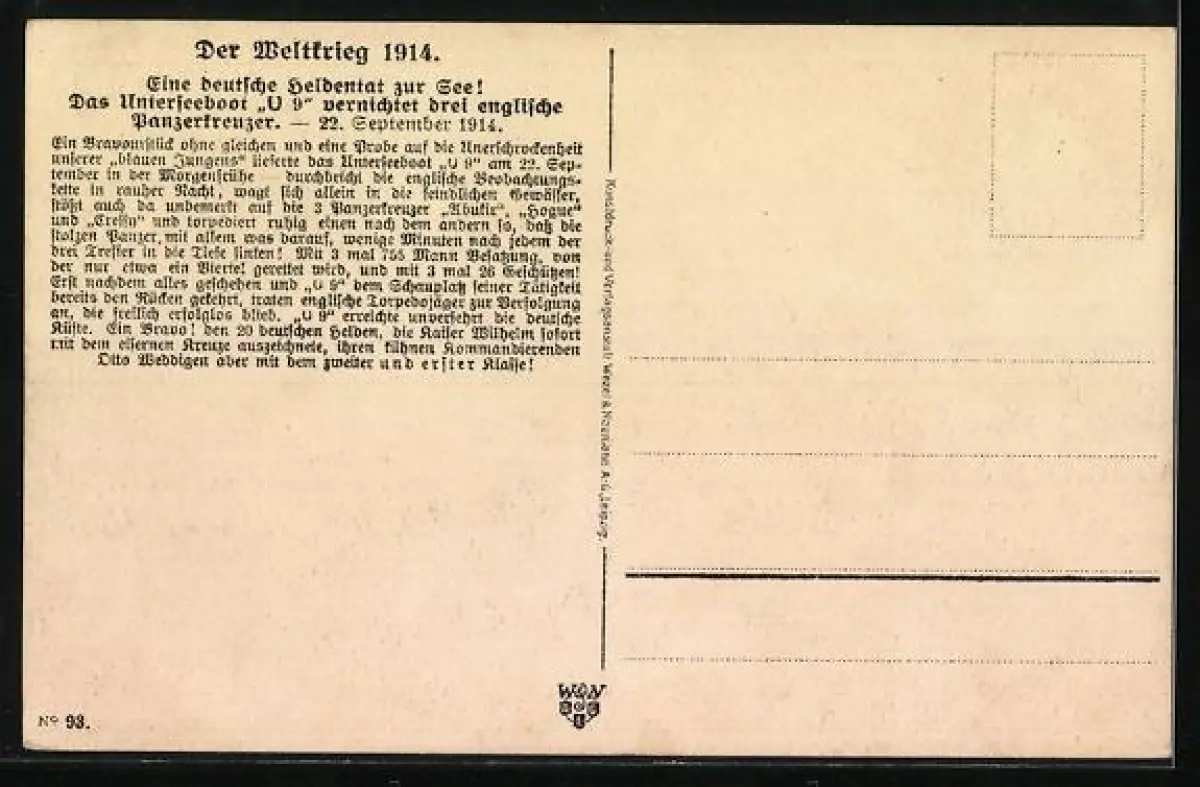 AK U-Boot U-9 versenkt 1914 die brit. Panzerkreuzer Aboukir, Hogue und Cressy, Portrait Kmdt. Otto Weddigen