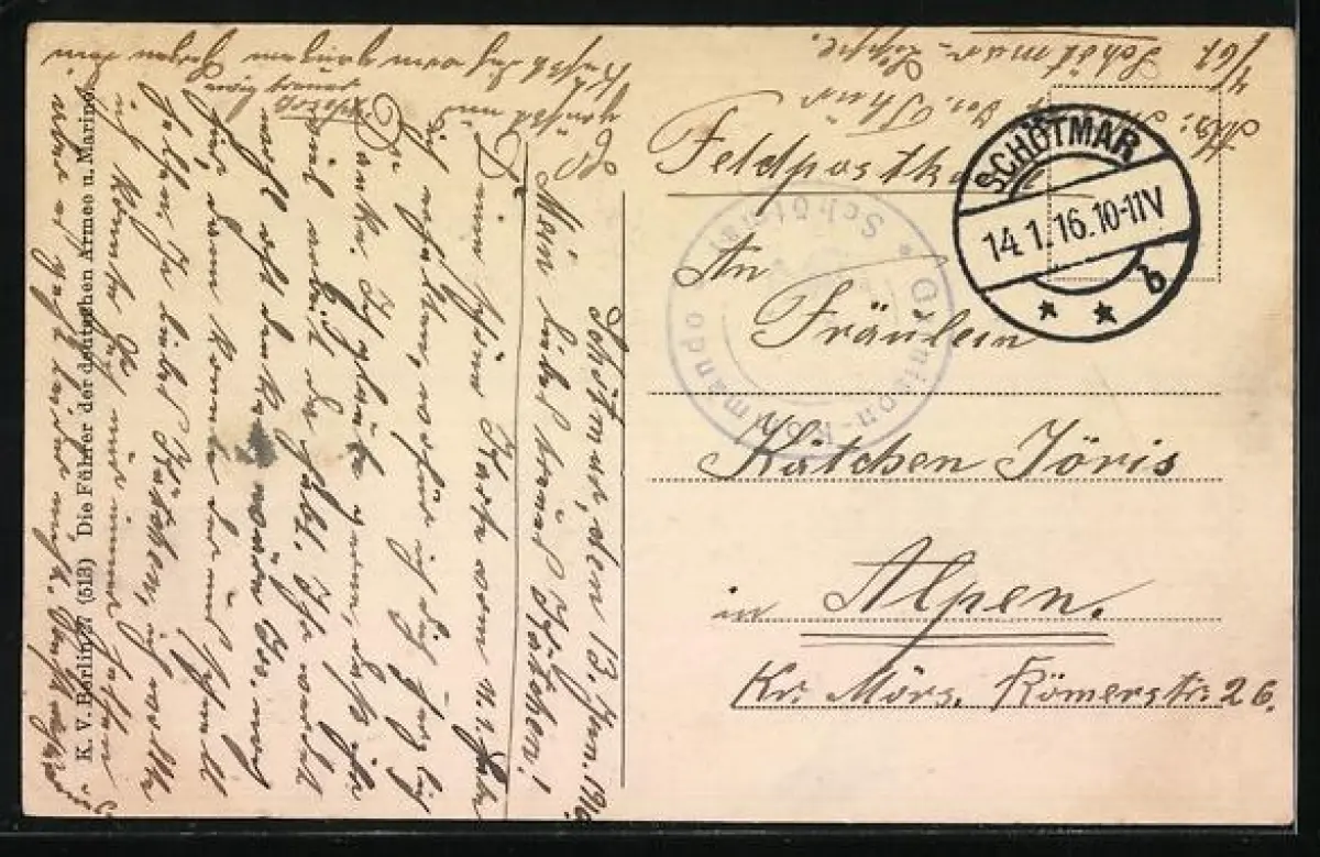 alte Ansichtskarte, gelaufen 1916 als Feldpost, Eckknick rechts oben, guter Zustand