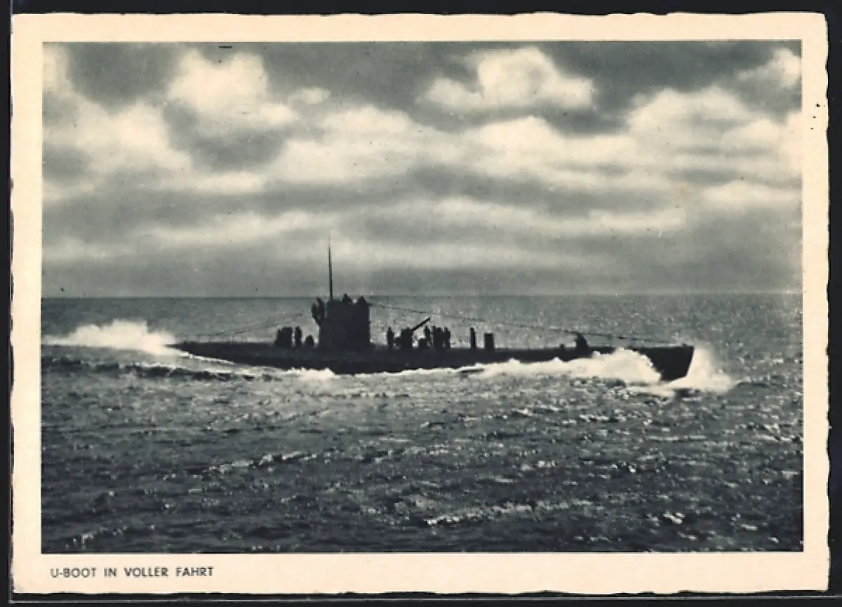 AK U-Boot in voller Fahrt, Matrosen an Deck