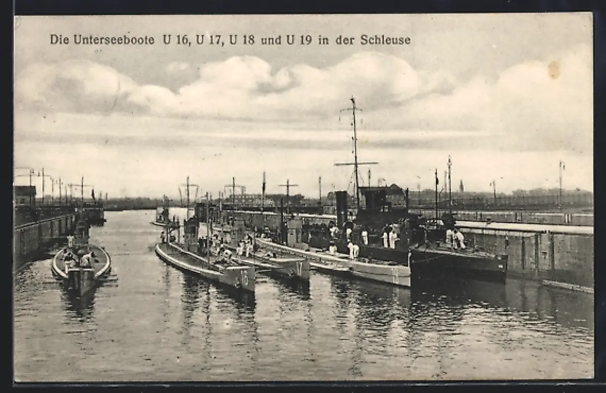 AK U-Boote U 16, U 17, U 18 und U 19 in der Schleuse