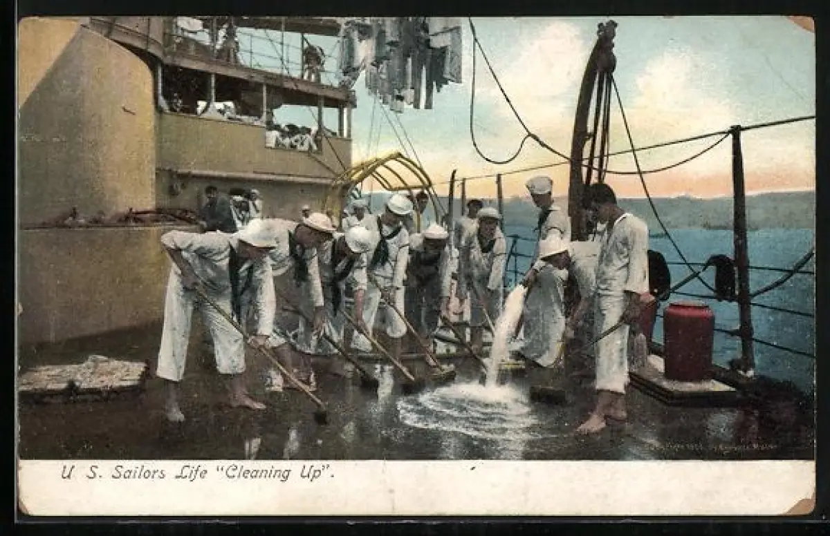 AK US Sailors Life, Cleaning Up, Kriegsschiff