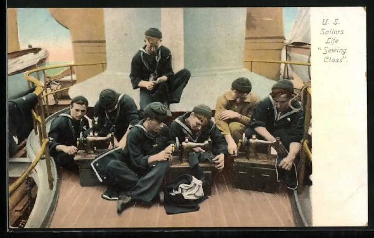 AK US Sailors Life, Sewing Class, Kriegsschiff