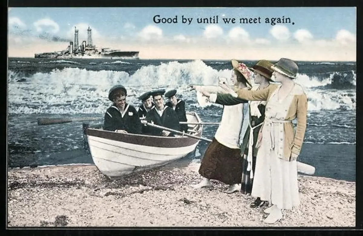 AK US-amerikanische Matrosen verabschieden sich von ihren Liebsten, Kriegsschiff