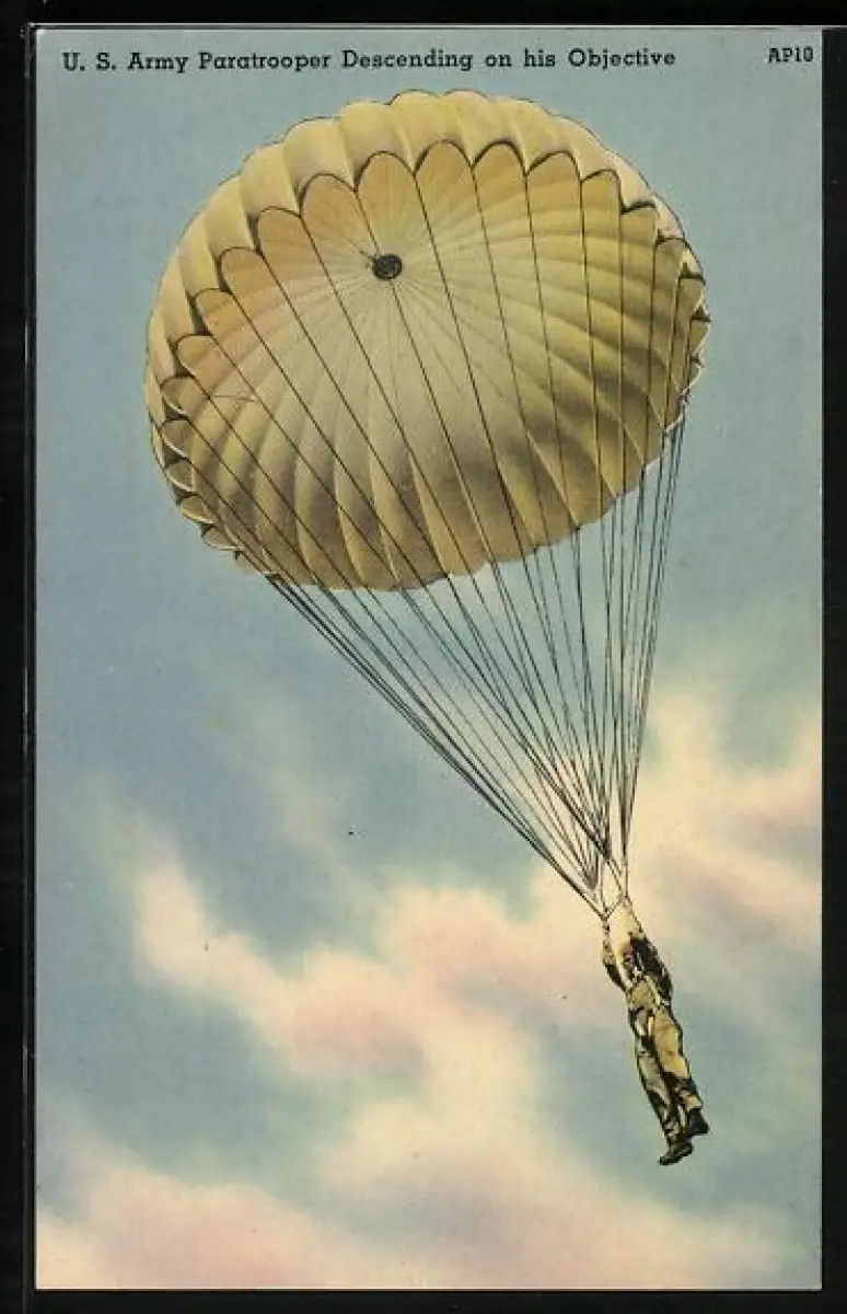 AK US-amerikanischer Fallschirmjäger nach Absprung schwebt zur Erde