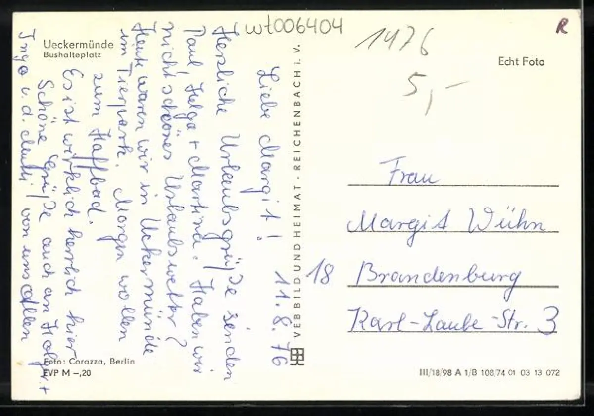alte Ansichtskarte, gelaufen 1976, Briefmarke entfernt, guter Zustand