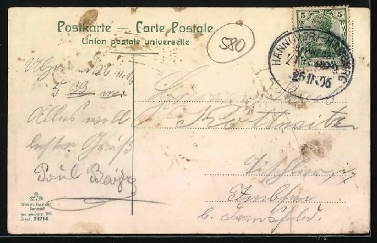 alte Ansichtskarte, gelaufen 1906, guter Zustand