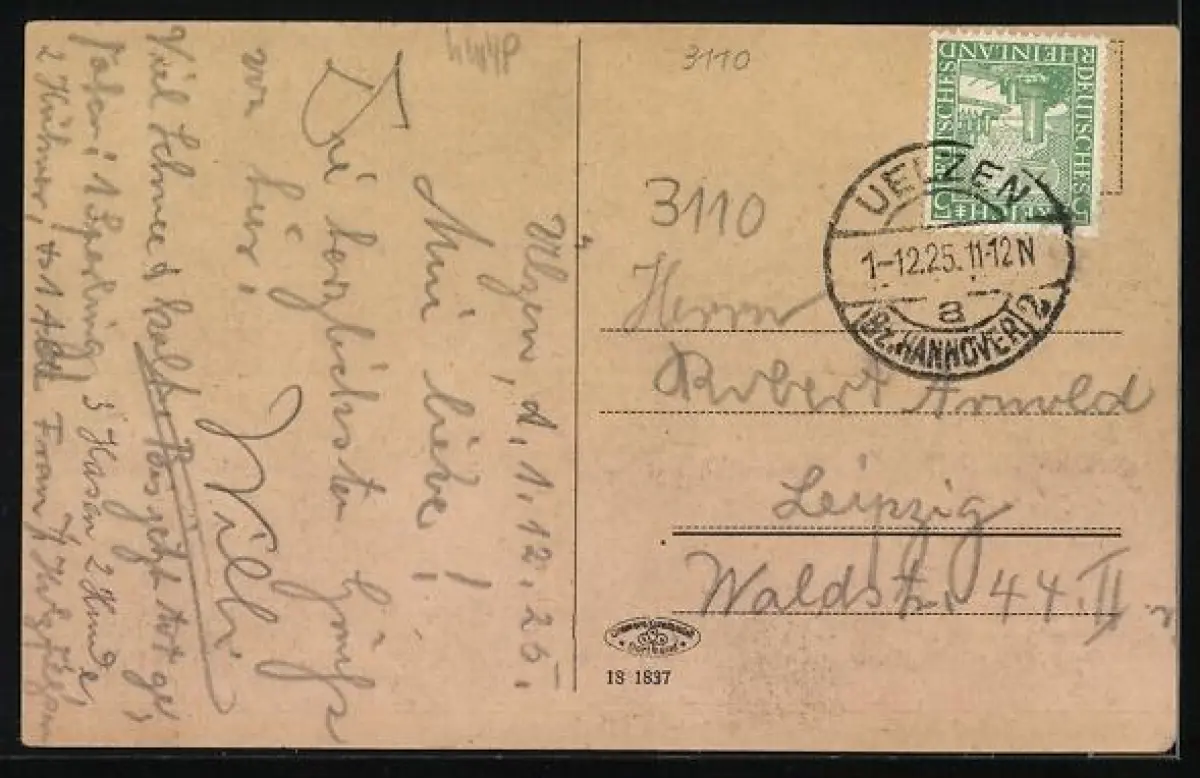 alte Ansichtskarte, gelaufen 1925, guter Zustand