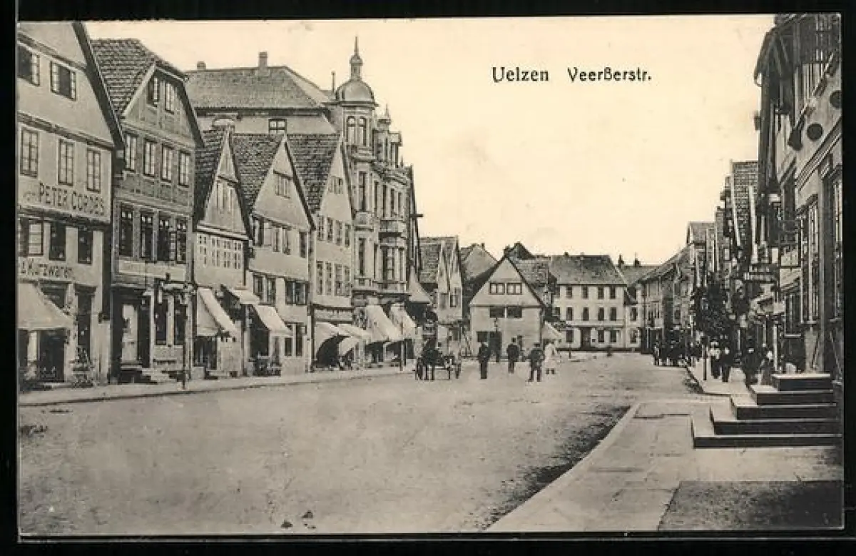 AK Uelzen, Partie der Veersserstrasse mit Geschäft von Peter Cordes