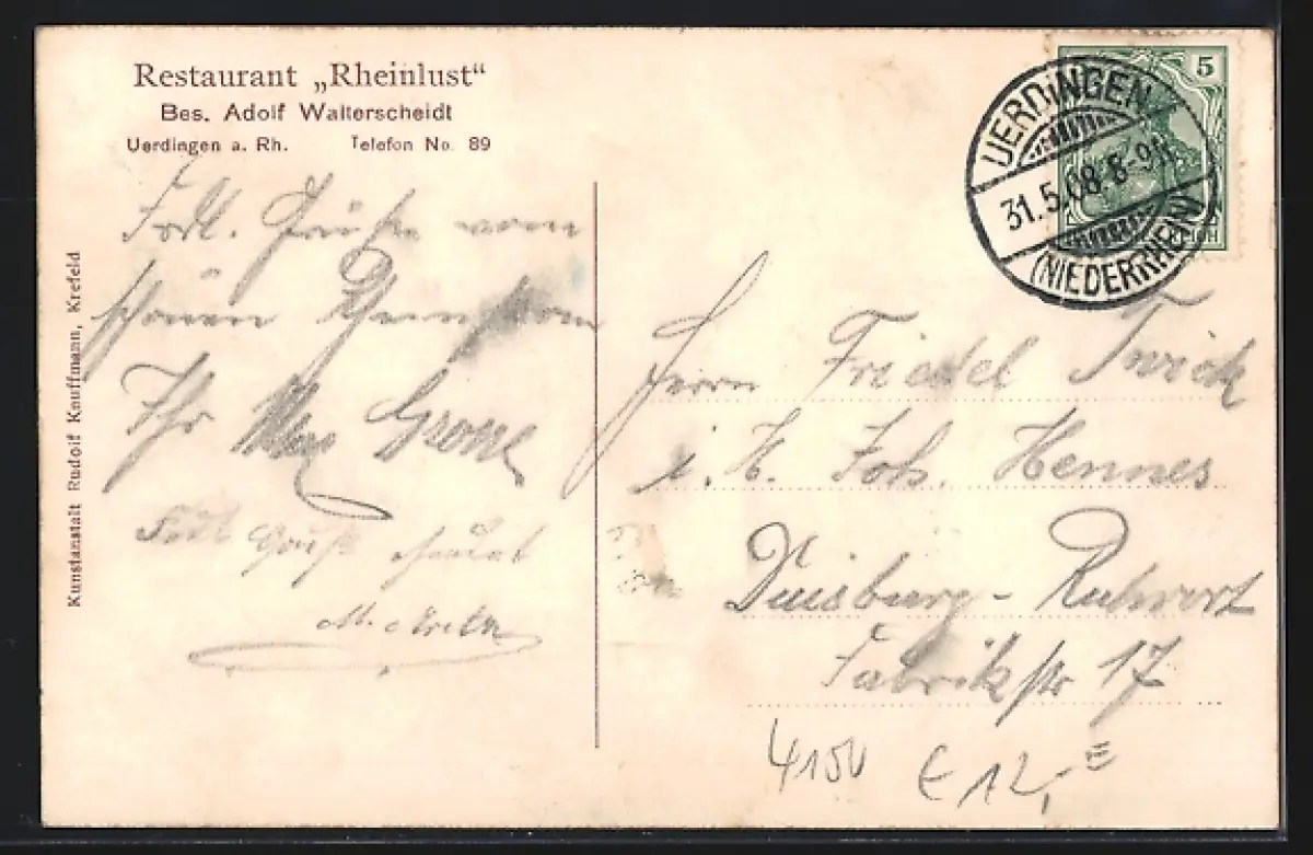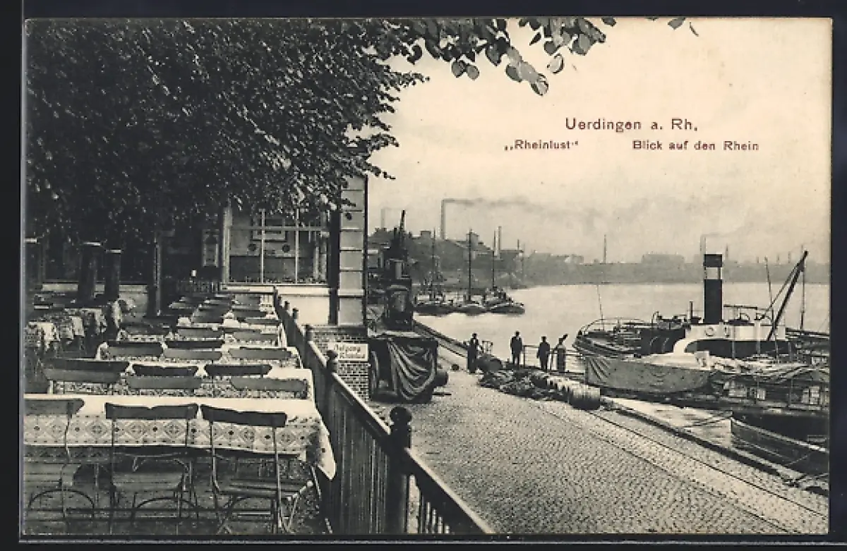 AK Uerdingen a. Rh., Cafe Rheinlust mit Blick auf den Rhein