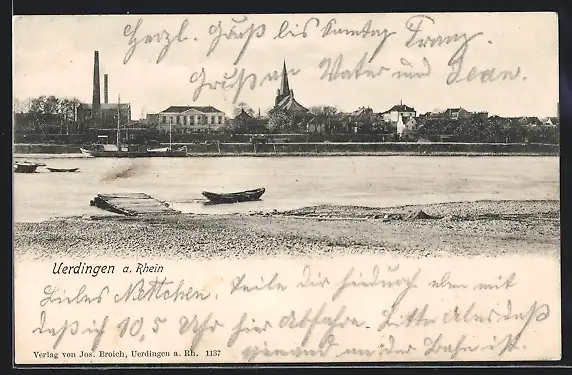 AK Uerdingen a. Rh., Uferpartie, Blick zur Kirche