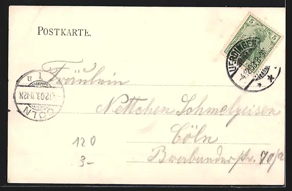 alte Ansichtskarte, gelaufen 1903, Eckknick oben rechts, guter Zustand