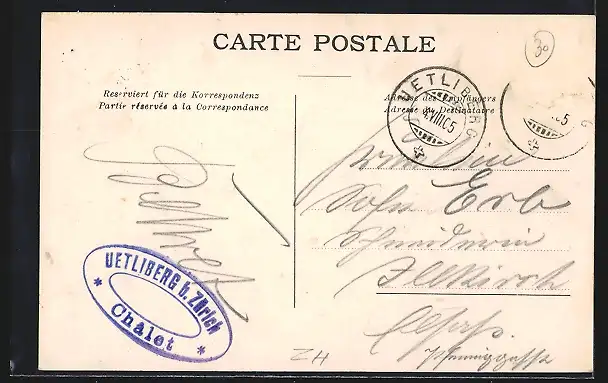 alte Ansichtskarte, gelaufen 1905, Briefmarke entfernt, guter Zustand