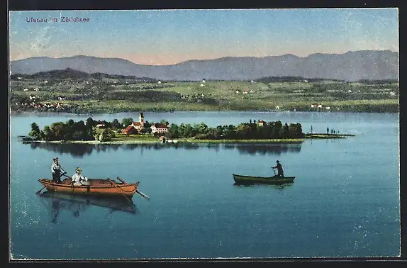 AK Ufenau im Zürichsee, Ruderer vor der Insel