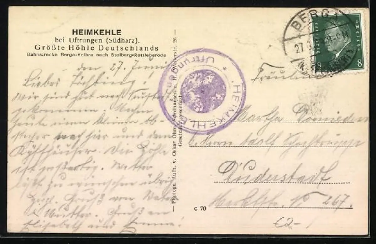 AK Uftrungen, Ansicht der Tyrahalle mit Tyrasee in der Höhle Heimkehle