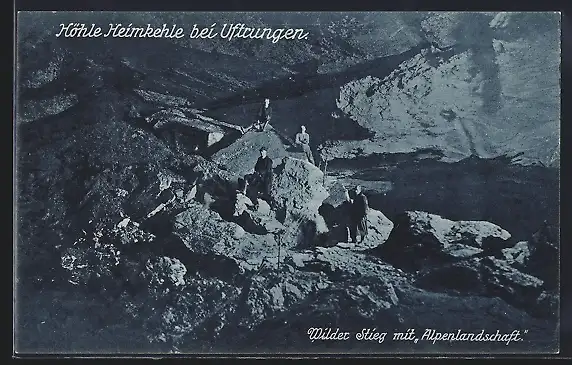 AK Uftrungen, Ansicht vom wilden Stieg mit Alpenlandschaft in der Höhle Heimkehle