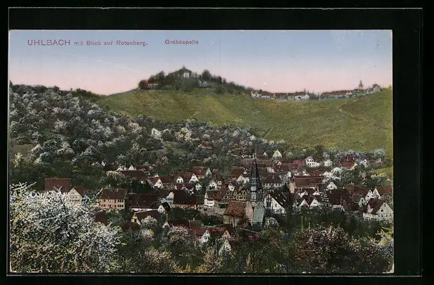 AK Uhlbach, Ortsansicht mit Blick auf Rotenberg und Grabkapelle