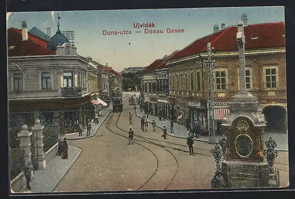 AK Ujvidek, Donaugasse mit Strassenbahn