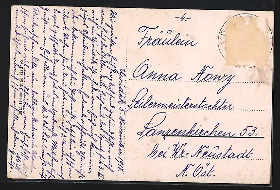 alte Ansichtskarte, gelaufen 1917, Briefmarke entfernt, rückseitig Oberflächenschaden, Einriss lil. oben, guter Zustand