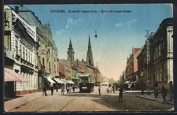 AK Ujvidek, Kossuth-Lajos-utca, Kossuth-Lajos-Gasse, Strassenbahn
