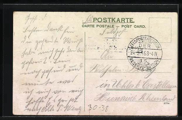 gelaufen 1915, minimaler Einriss unten mittig, guter Zustand