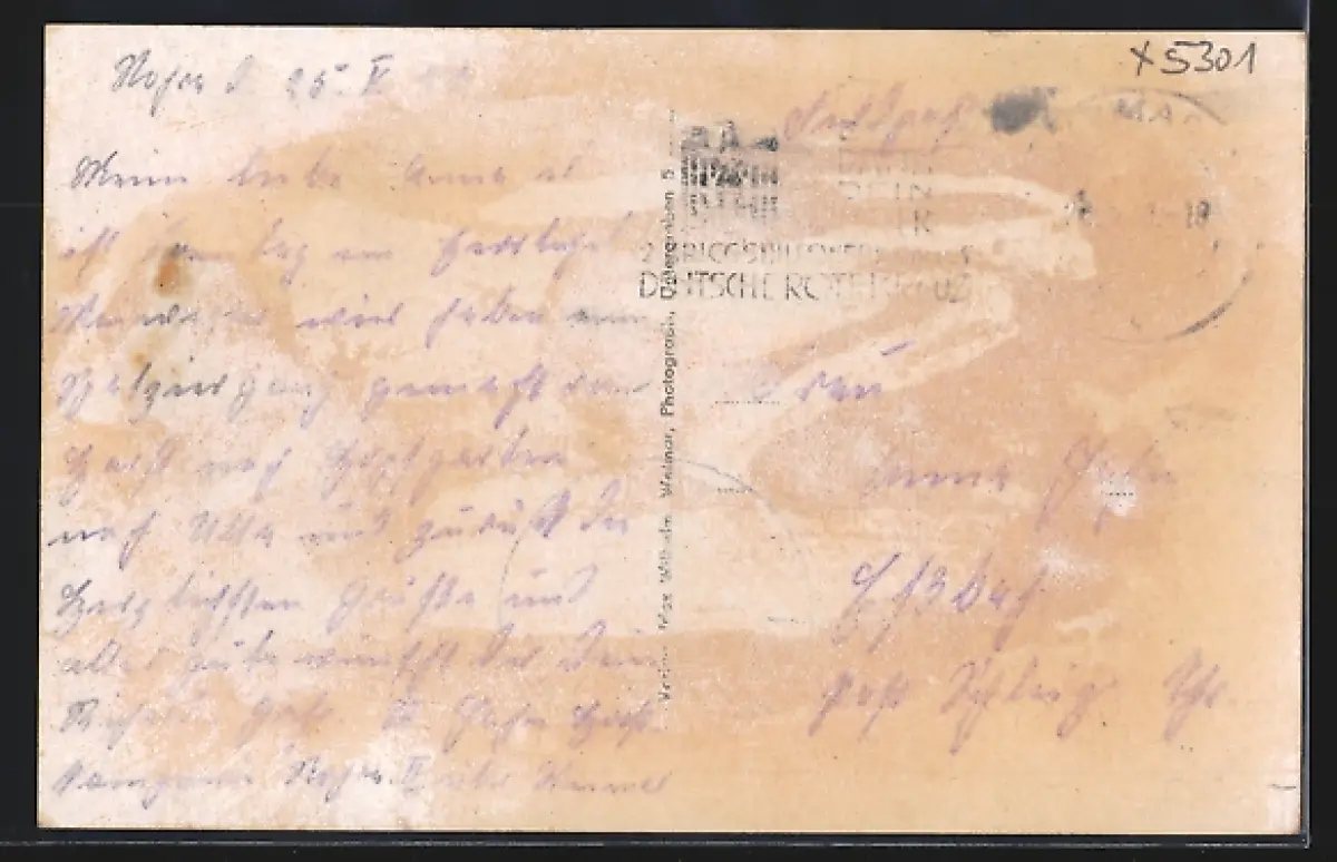 alte Ansichtskarte, gelaufen, rückseitig Klebe- und Papierreste, guter Zustand