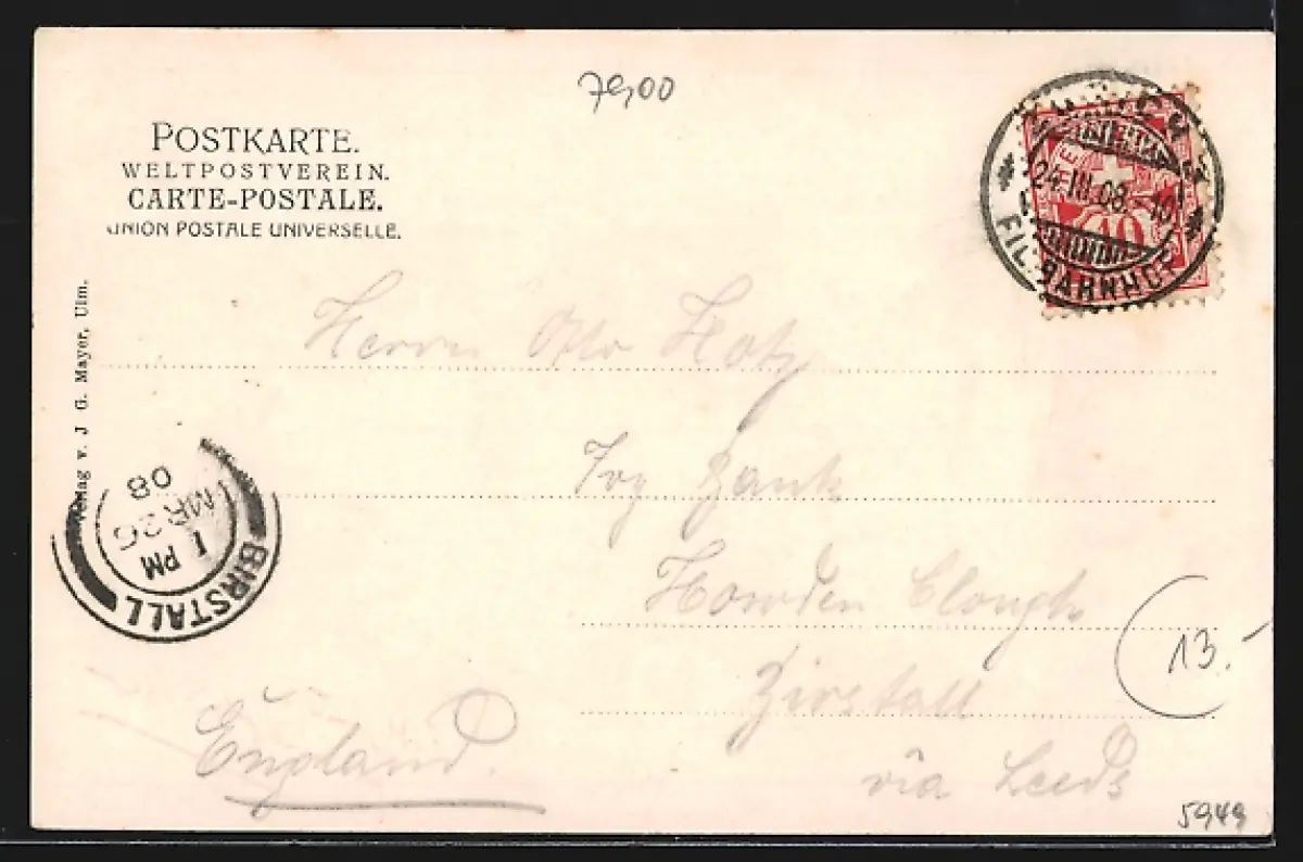 alte Ansichtskarte, gelaufen 1908, guter Zustand