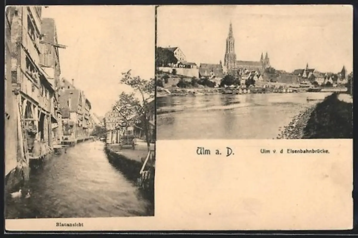 AK Ulm / Donau, Ortsansicht von der Eisenbahnbrücke aus, Blauansicht