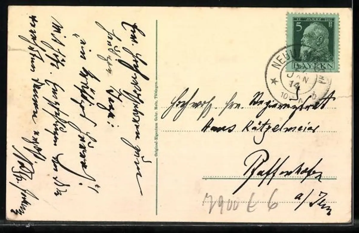 alte Ansichtskarte, gelaufen 1914, Einriss oben rechts, Eckknick unten rechts, Bugspur links mittig, guter Zustand
