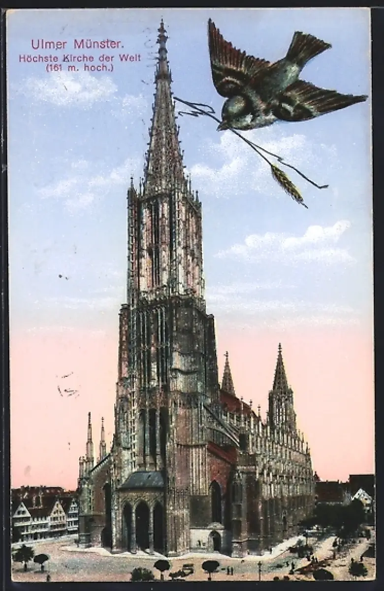 AK Ulm / Donau, Ulmer Münster, höchste Kirche der Welt, Spatz
