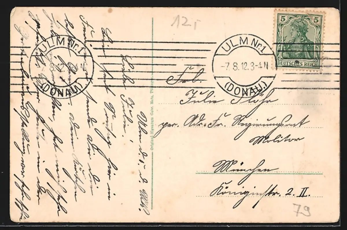 alte Ansichtskarte, gelaufen 1912, Stempelspur, guter Zustand