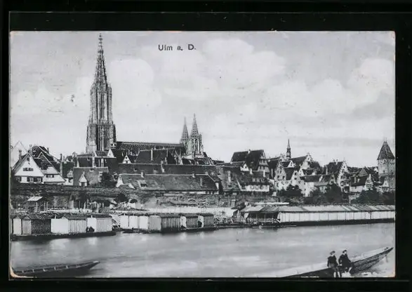 AK Ulm a. D., Ortsansicht mit Flusslauf und Booten