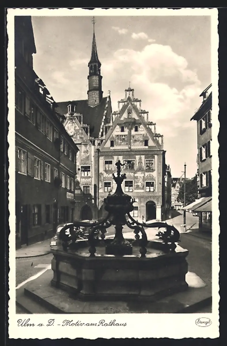 AK Ulm a. D., Rathaus mit Brunnen