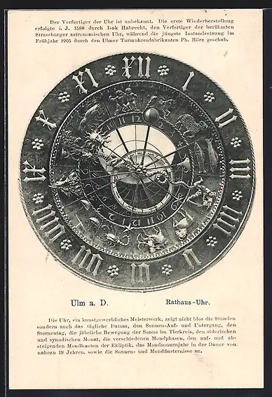 AK Ulm a. D., Rathausuhr mit Sternzeichen