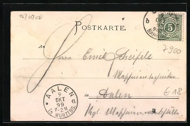 alte Ansichtskarte, gelaufen 1899, guter Zustand