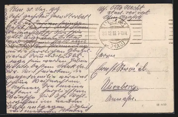 alte Ansichtskarte, gelaufen 1919, Briefmarke entfernt, rückseitig Oberflächenschaden, guter Zustand