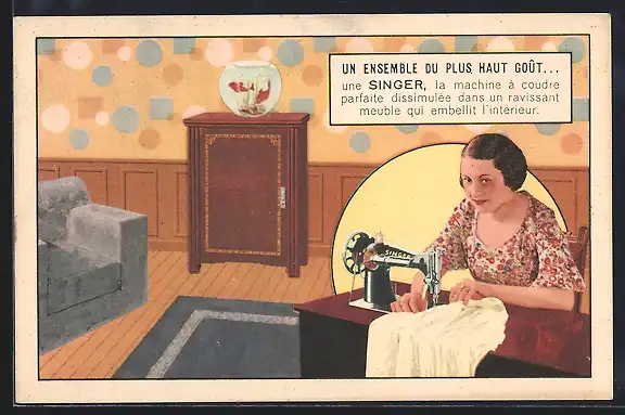 AK Un Ensemble du plus jaut gout..., Singer-Nähmaschine