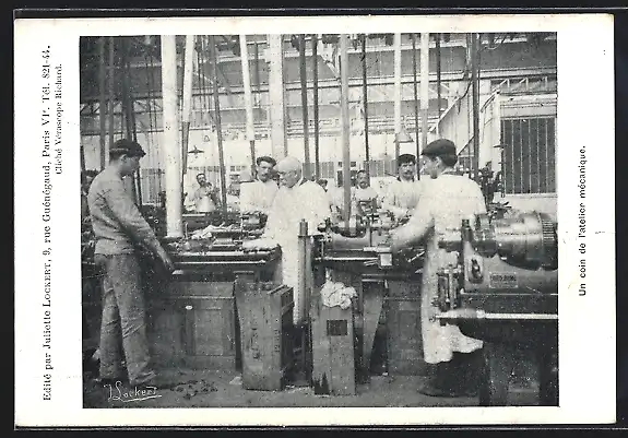 AK Un coin de l`atelier mécanique, Fabrikarbeiter an der Maschine