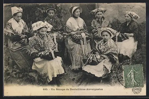 AK Un groupe de Dentellières Auvergnates, eine Gruppe Spitzenklöpplerinnen aus der Auvergne