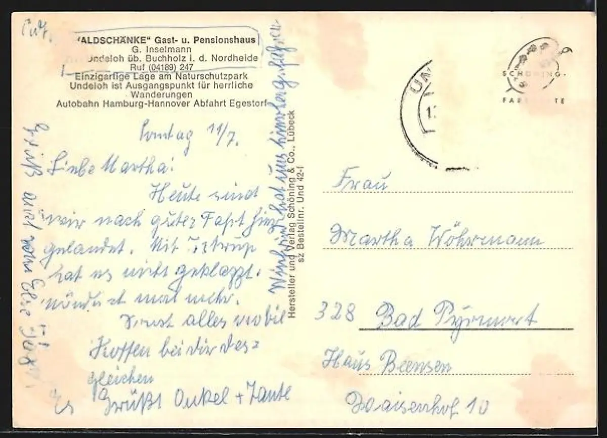 AK Undeloh / Lüneburger Heide, Gast- und Pensionshaus Waldschänke, Bes. G. Inselmann