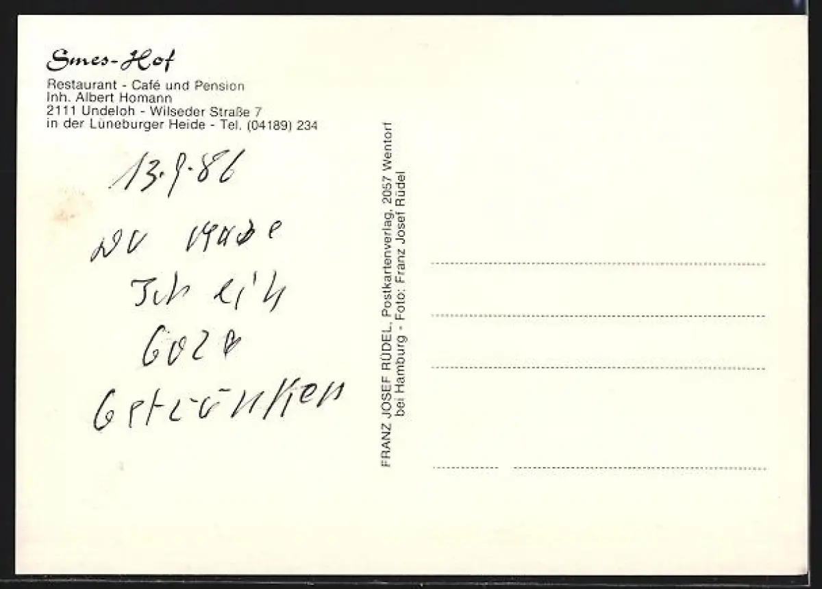 AK Undeloh, Smes-Hof, Restaurant, Café und Pension, Inh. Albert Homann, Wilseder Strasse 7