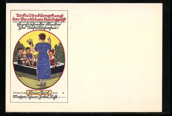 AK Unfallbekämpfung der Deutschen Reichspost, Erzieht die Kinder zur Unfallsicherheit, Lehrerin mit Kindern