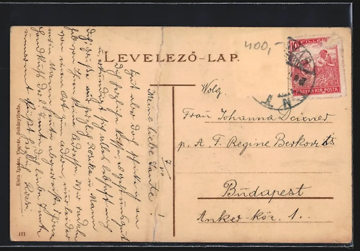 alte Ansichtskarte, gelaufen, Briefmarke entfernt, Bugspur mittig, guter Zustand