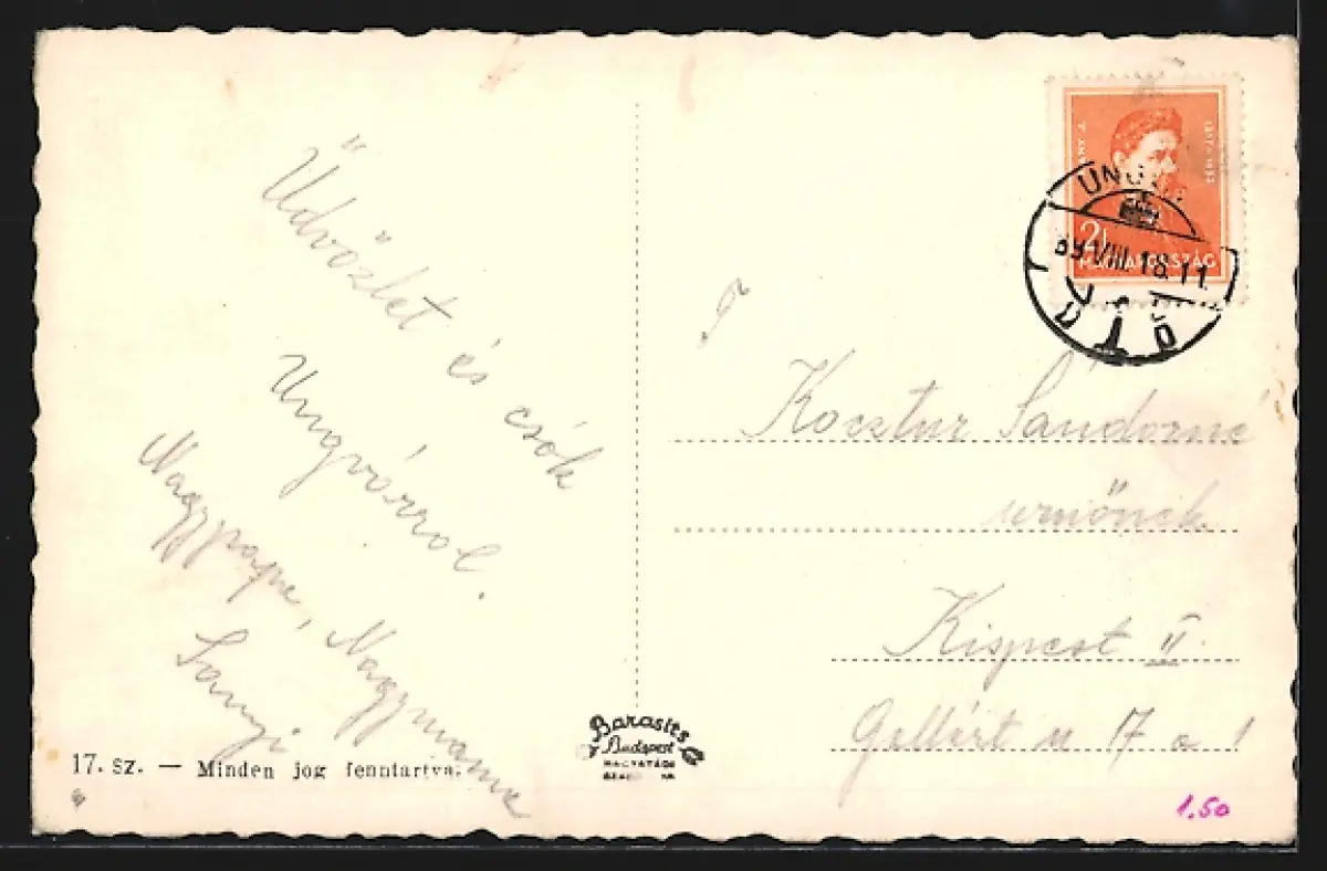 alte Ansichtskarte, gelaufen, Eckknicke unten, Stempelspur, guter Zustand