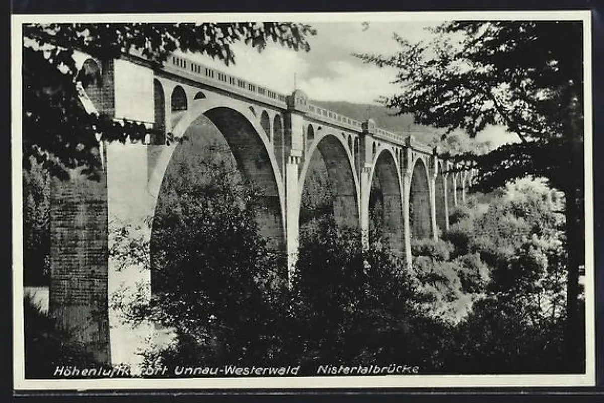 AK Unnau /Westerwald, Blick auf die Nistertalbrücke