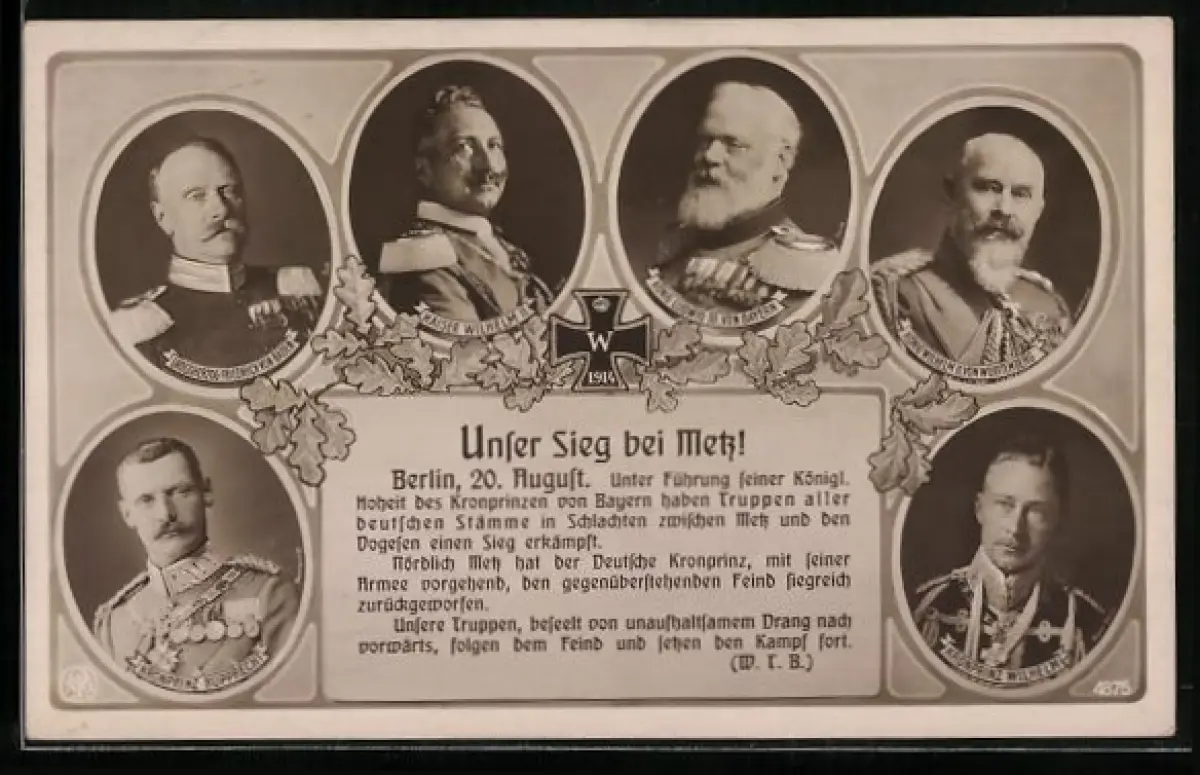 AK Unser Sieg bei Metz, Porträts von Kaiser Wilhelm II., König Ludwig III. & Kronprinz Wilhelm