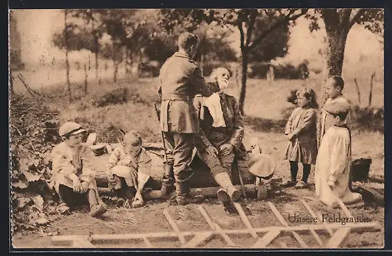 AK Unsere Feldgrauen, Pionier beim Friseur