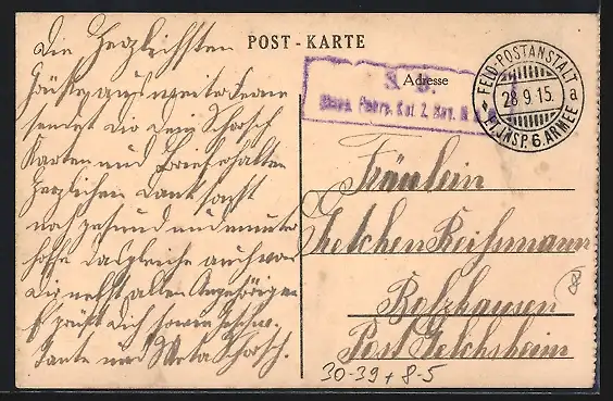 alte Ansichtskarte, gelaufen 1915, Stempelspur, guter Zustand